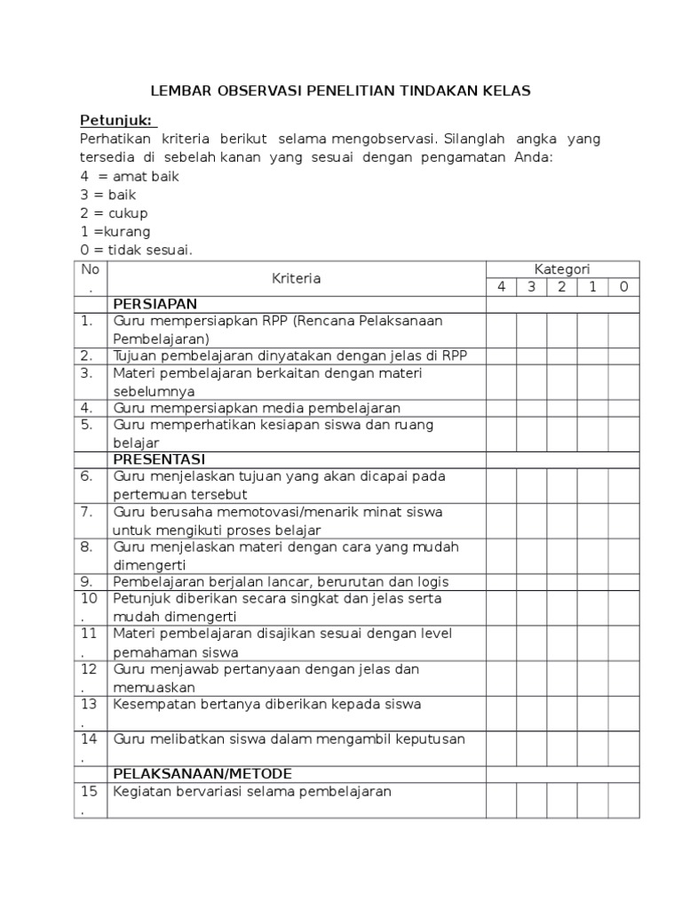 Tindakan tersebut diberikan oleh guru atau dngan arahan dari guru yang dilakukan oleh siswa. 5 PTK merupakan penelitian tindakan yang dilakukan dengan tujuan memperbaki mutu praktik pembelajaran di kelas. Translate 37 rows contoh instrumen ptk lembar observasi aktivitas guru setelah menerbitkan tulisan mengenai contoh lembar observasi aktivitas siswa dalam pembelajaran menulis mengarang kali ini kembali blog penelitian tindakan kelas akan memberikan contoh lembar observasi yaitu lembar observasi aktivitas.