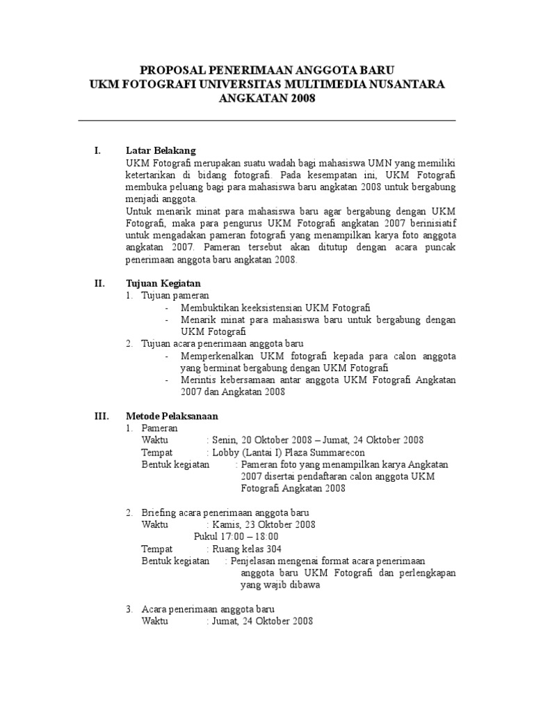 Contoh Proposal Kegiatan Penerimaan Mahasiswa Baru Berbagi Contoh Proposal
