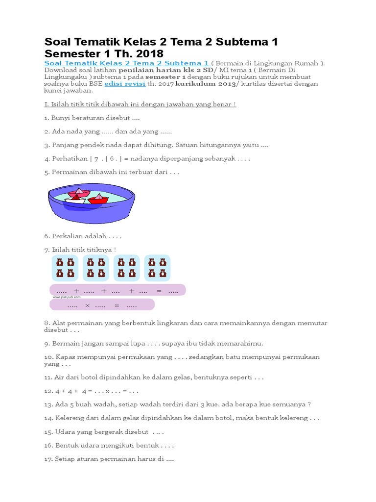 Soal Tematik Kelas 2 Tema 2 Subtema 1 Semester 1 Th