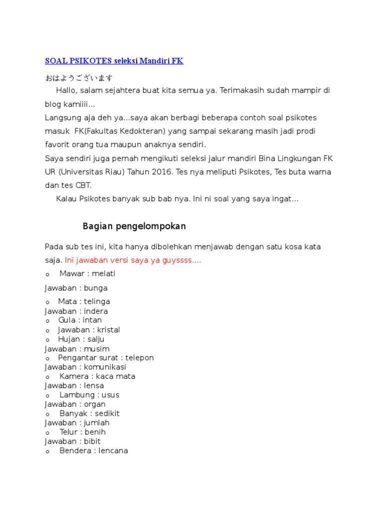 Latihan Tes Psikotes Analogi Verbal. Latihan soal biologi kedokteran jawablah soal soal di bawah ini dengan uraian yang lengkap. PRANATA SOSIAL DI DALAM ISLAM.