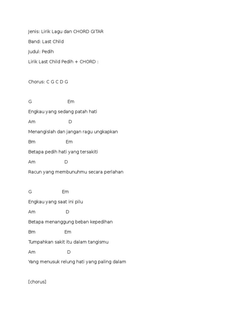 Kunci Gitar Lagu Last Child Pedih Chordtela Chord Gitar Dan Lirik Lagu Indonesia Terbaru