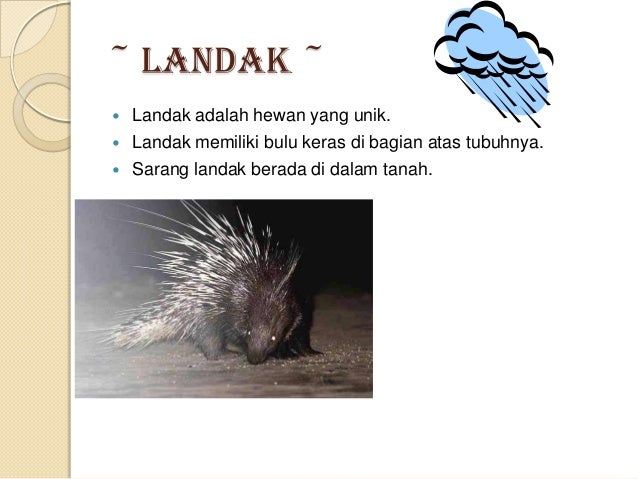 Ciri khusus landak dan fungsinya landak merupakan hewan adalah hewan pengerat yang mempunyai rambut tebal yang berbentuk duri tajam. Kulit berduri ini berguna untuk alat pertahanan diri jika diserang musuh. Landak adalah salah satu dari sekian banyak hewan mamalia pengerat Rodentia di dunia ini dan mereka menempati urutan posisi ke tiga dalam hal ukuran tubuh terbesar dari semua jenis binatang pengerat yang ada di bumi.