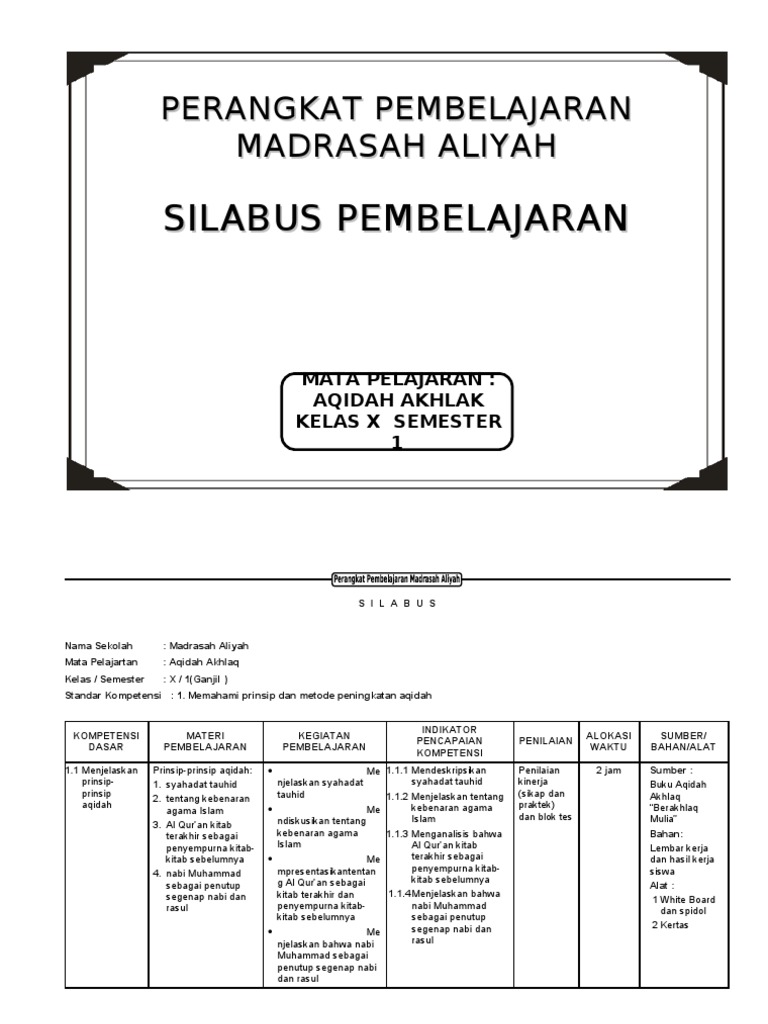 Silabus aqidah akhlak mi kurikulum 2013. Silabus aqidah akhlak ma kelas x kurikulum 2013 pdf. Rpp aqidah akhlak kurikulum 2013 madrasah aliyah.